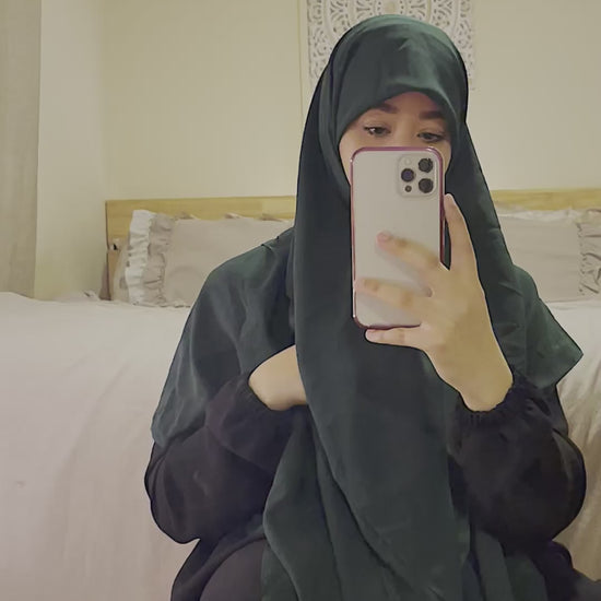 RoyalGreen Malàsia Khimar is characterized by two pieces made of chiffon material for a unique Asian style.